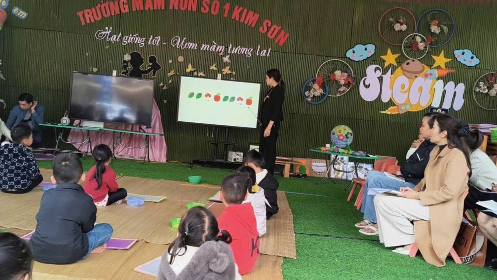 Hội thảo tập trung dự giờ, phân tích và chia sẻ chuyên môn thông qua 03 hoạt động giáo dục minh họa được chuẩn bị công phu và tổ chức tại Trường Mầm non số 1 Kim Sơn.
