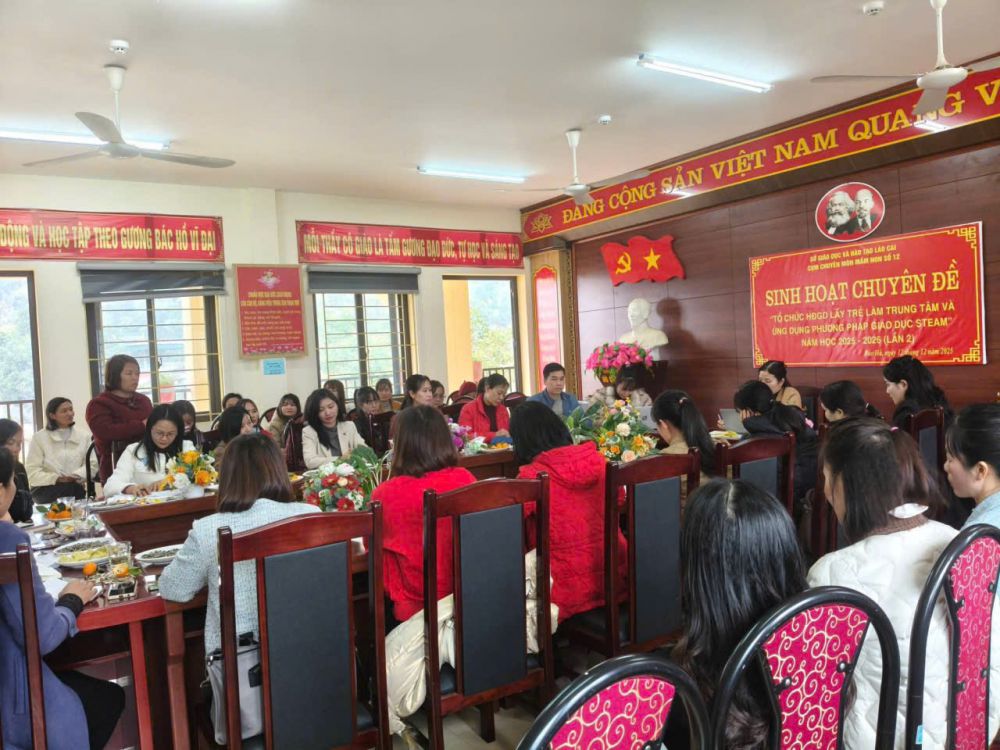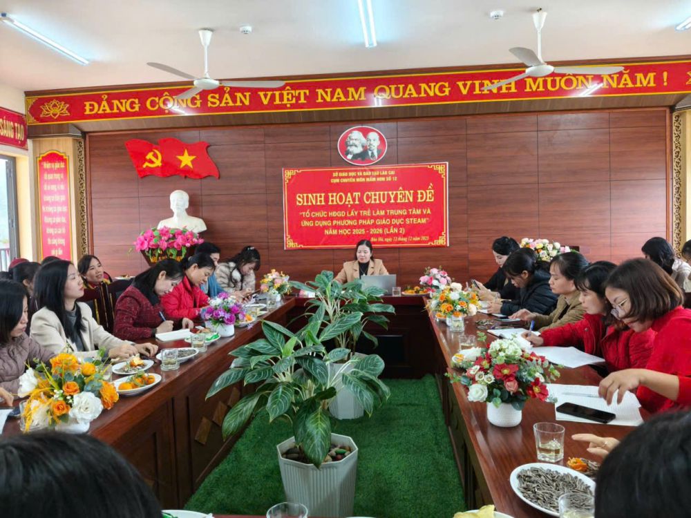 Thực hiện kế hoạch số 01/CCM12 sinh hoạt cụm chuyên môn năm học 2025–2026, ngày 12/12/2025, Cụm chuyên môn số 12 gồm 07 trường mầm non trên địa bàn xã Bảo Hà đã tổ chức Hội thảo sinh hoạt chuyên đề “Tổ chức hoạt động giáo dục lấy trẻ làm trung tâm và ứng dụng phương pháp giáo dục STEAM” cấp cụm lần 2.
