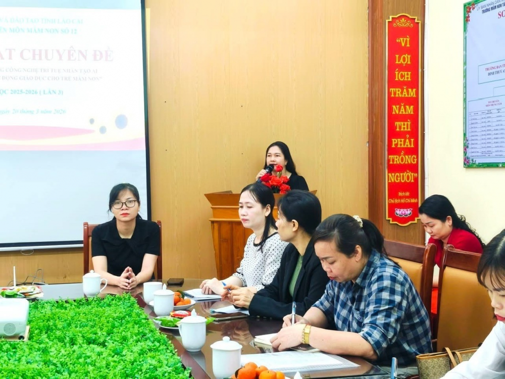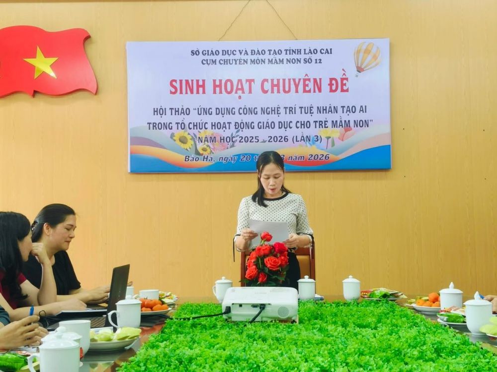 * Đặc biệt, buổi sinh hoạt vinh dự được lắng nghe ý kiến phát biểu chỉ đạo của đồng chí Nguyễn Thị Kim Chung – Chuyên viên Sở Giáo dục và Đào tạo Lào Cai; cùng ý kiến phát biểu của đồng chí Phùng Thị Thảo – Trưởng phòng Văn hóa – Xã hội xã Bảo Hà. Các ý kiến đã ghi nhận và đánh giá cao tinh thần chủ động, sáng tạo của các đơn vị trong việc tổ chức sinh hoạt chuyên môn; đồng thời đưa ra những định hướng trọng tâm trong thời gian tới, nhấn mạnh việc tăng cường ứng dụng công nghệ, đặc biệt là trí tuệ nhân tạo, nhằm nâng cao chất lượng giáo dục mầm non trong bối cảnh chuyển đổi số.