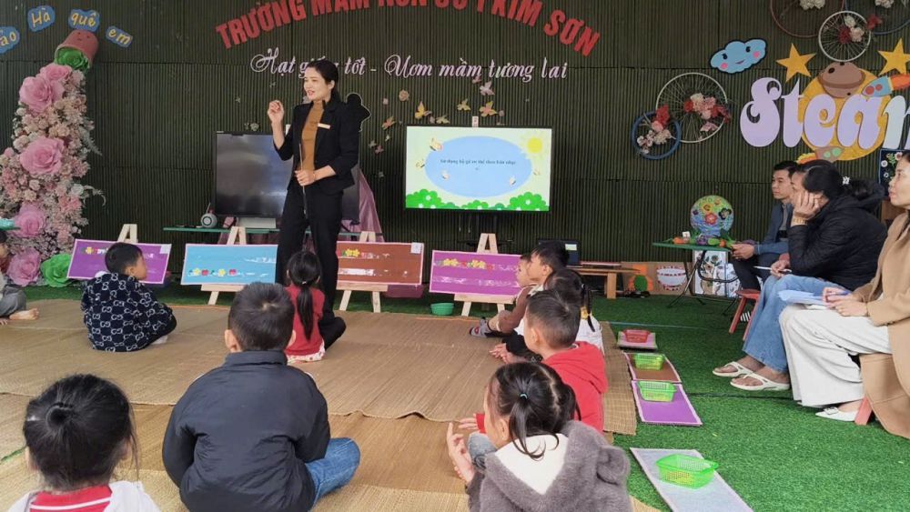 Hoạt động thứ hai là “Làm chong chóng theo quy trình EDP” dành cho trẻ 5–6 tuổi, do cô Lâm Thị Lành (Trường Mầm non Cam Cọn) tổ chức. Giáo viên đã vận dụng hiệu quả quy trình EDP, khuyến khích trẻ trải nghiệm, sáng tạo và giải quyết vấn đề, góp phần hình thành các kỹ năng theo định hướng giáo dục STEAM..jpg)